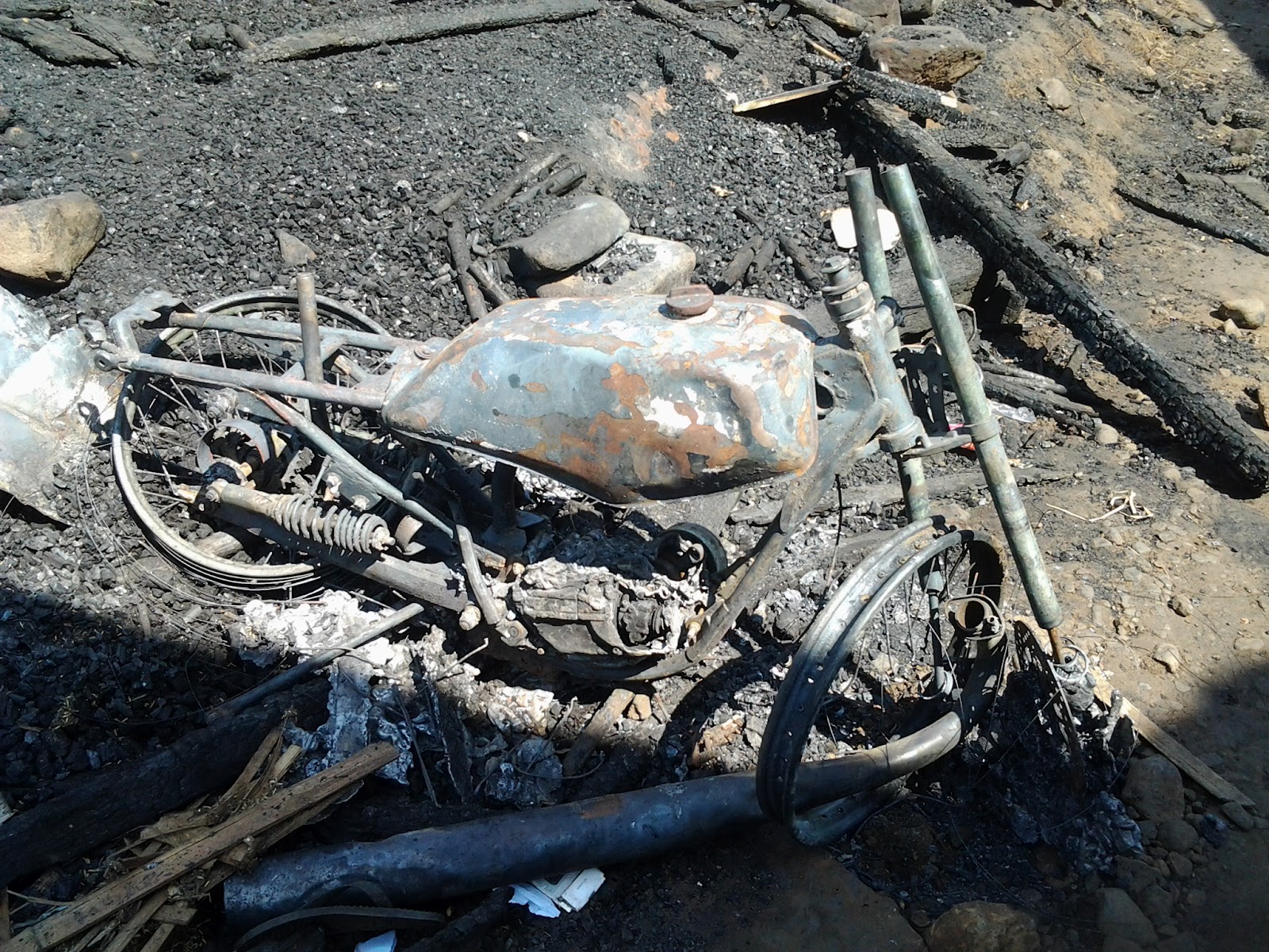 Akan tetapi siapa yang pernah menyangka, karena pada saat kembali untuk mengambil motornuya ternyata motor tersebut sudah jadi barang rongsokan dan siap untuk dimanfaatkan oleh para pemulung, semua peristiwa ini terjadi pada Peringatan Hari Kesaktian Pancasila 1 Oktober 2012, di saat itu rumah hangus di lalap si jago merah, tutur seorang korban.