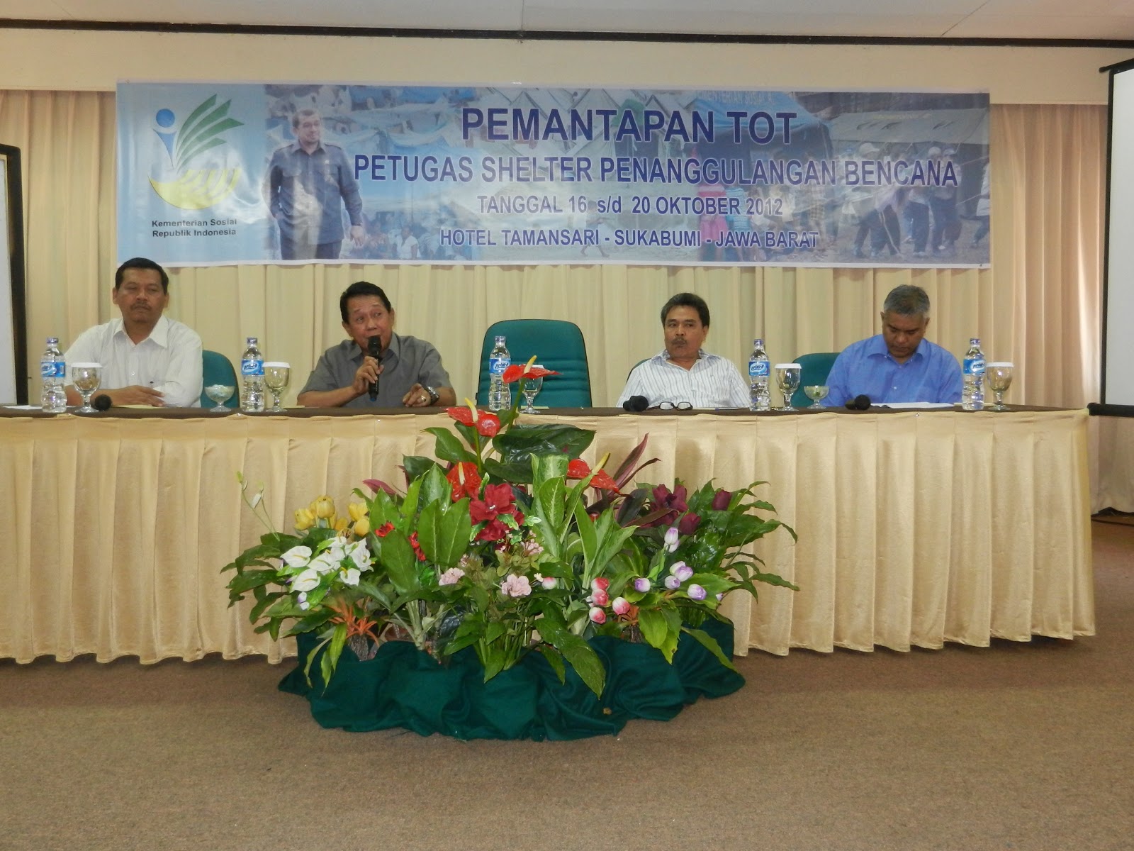 Acara pembukaan oleh Dirjen Perlinjamsos diwakili Direktur PSKBS, Prof.Dr.Syahabuddin, karena pada saat yang bersamaan Bapak Dirjen dan Direktur PSKBA sedang menghadiri Pembukaan KSB (Kampung Siaga Bencana) di Palembang-Sumatera Selatan,.
