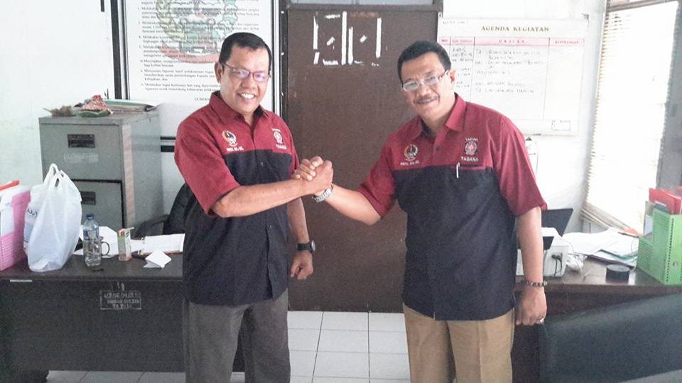 Kadis Sosial menyerahkan Pataka Tagana kepada Pimpinan rombongan, diterima Kepala Bidang Bantuan dan Jaminan Sosial Drs H Sabaruddin MM disaksikan para pegawai dan anggota rombongan bertempat di halaman Kantor Dinas Sosial Jalan AP Pettrani No 59 Makassar.