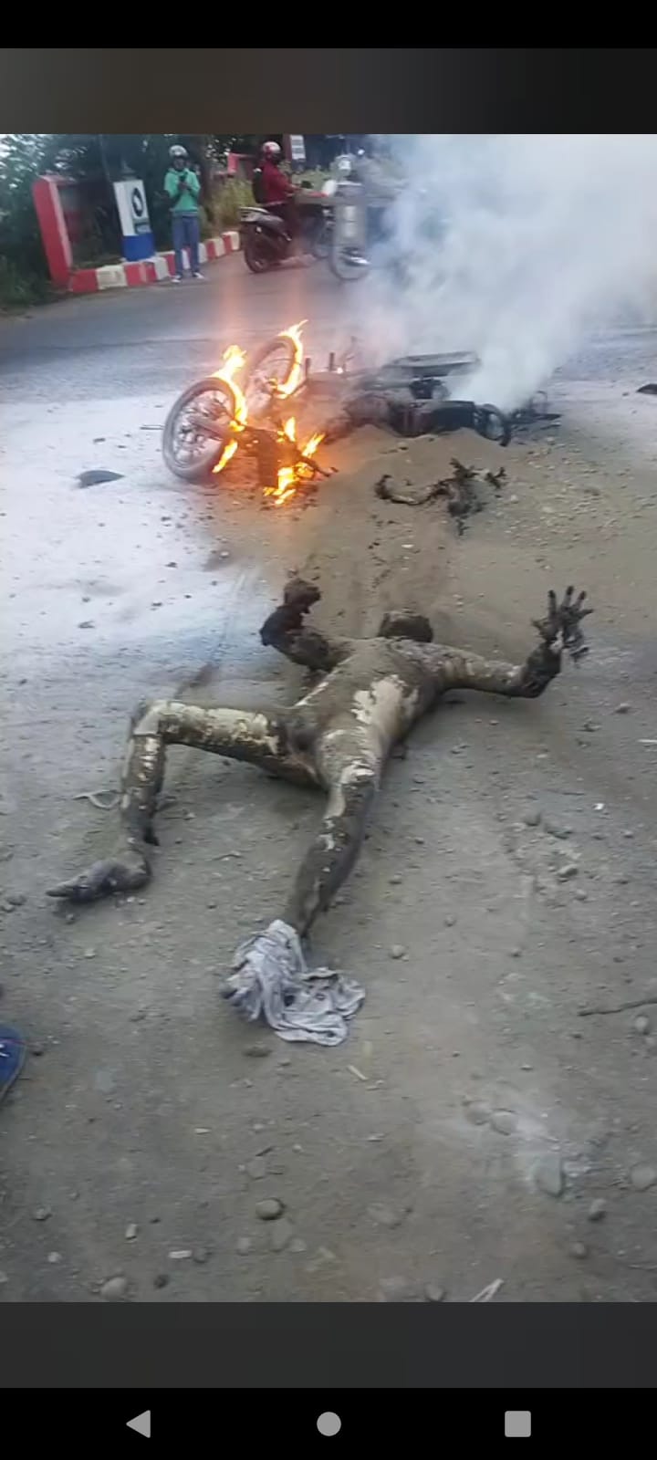 Almarhum meninggal dunia dan sekujur tubuhnya terpanggang api, setelah tabrakan dengan pengendara, Usman Dg Lette (46), pekerjaan cleaning service BRI Sungguminasa, Jumat pagi 27/8/2021 dan menjadi viral di media sosial.