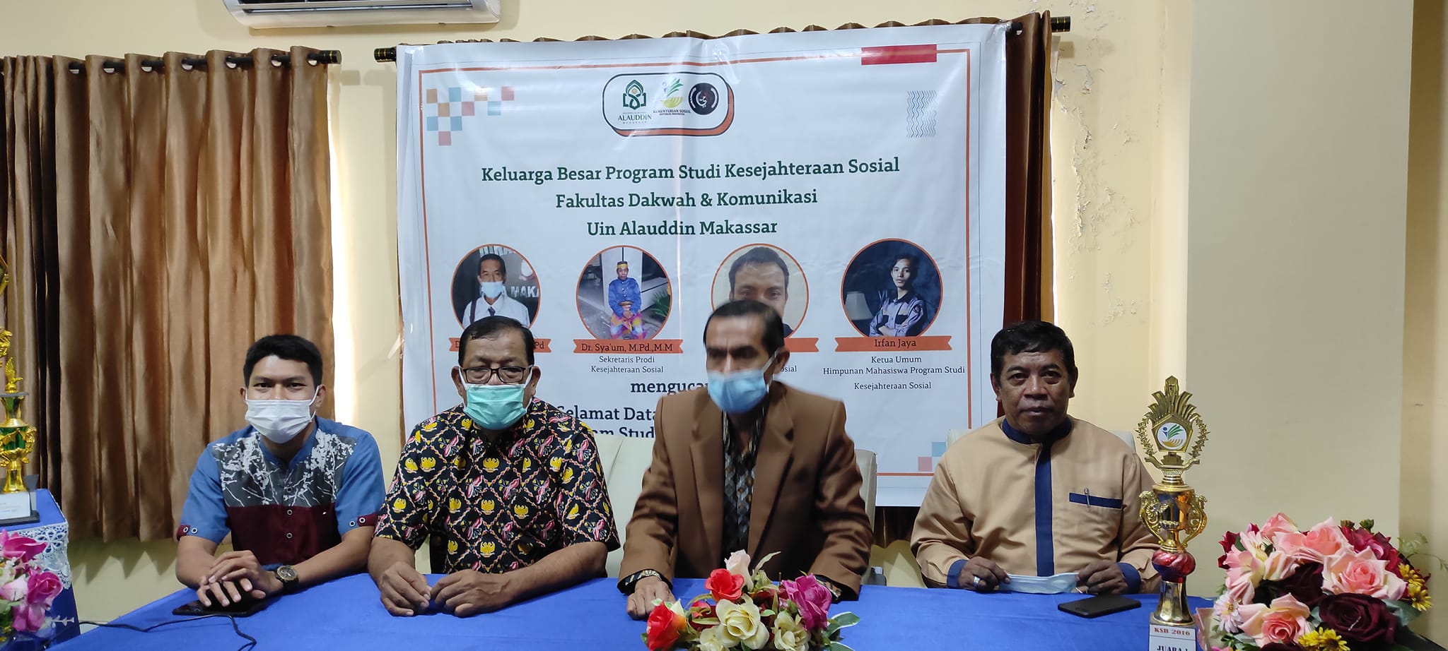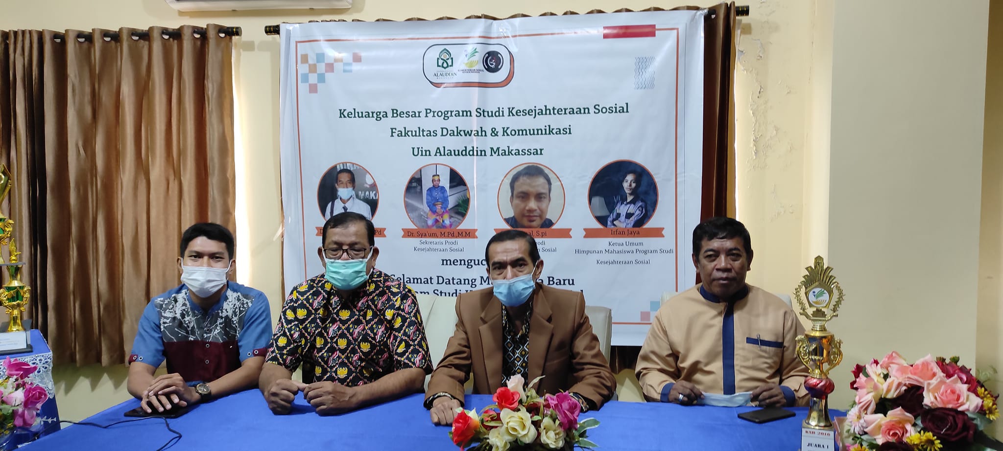SYAKHRUDDIN.COM – Ketua Prodi Kesejahteraan Sosial, DR Muh. Ilham, M.Pd didampingi Sekretaris, DR. Syam’um, M.Pd, MM, Jumat 27/08/21 secara resmi menyambut Mahasiswa Baru (Maba) Kessos tahun 2021/2022 melalui Daring (Dalam Jaringan), berlangsung di ruang Multimedia Fakultas Dakwah & Komunikasi UIN Alauddin Makassar.