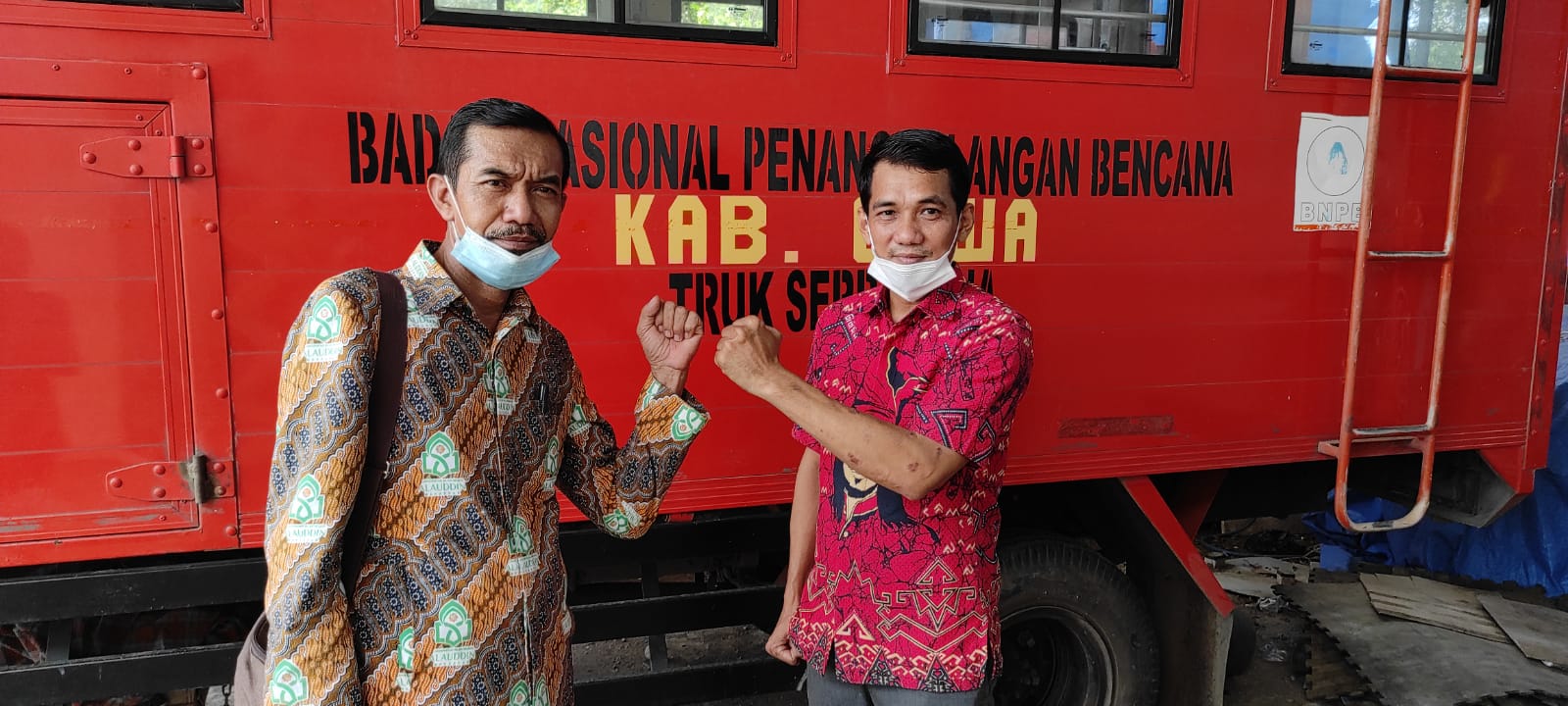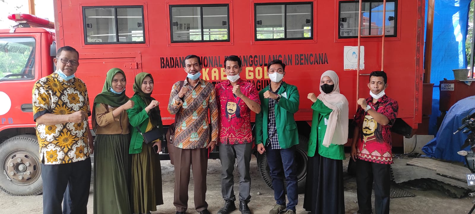 Usai penyerahan dan penerimaan mahasiswa, dilanjutkan dengan foto bersama, dengan latar belakang perangkat alat-alat pertolongan milik BPBD Kabupaten Gowa.