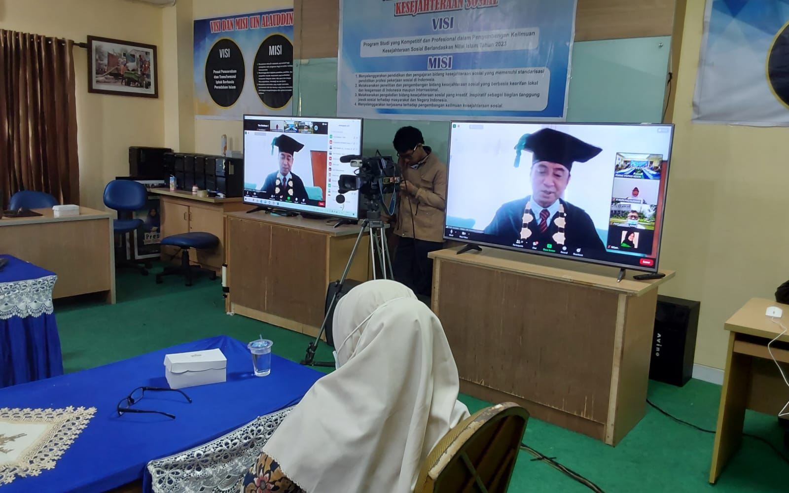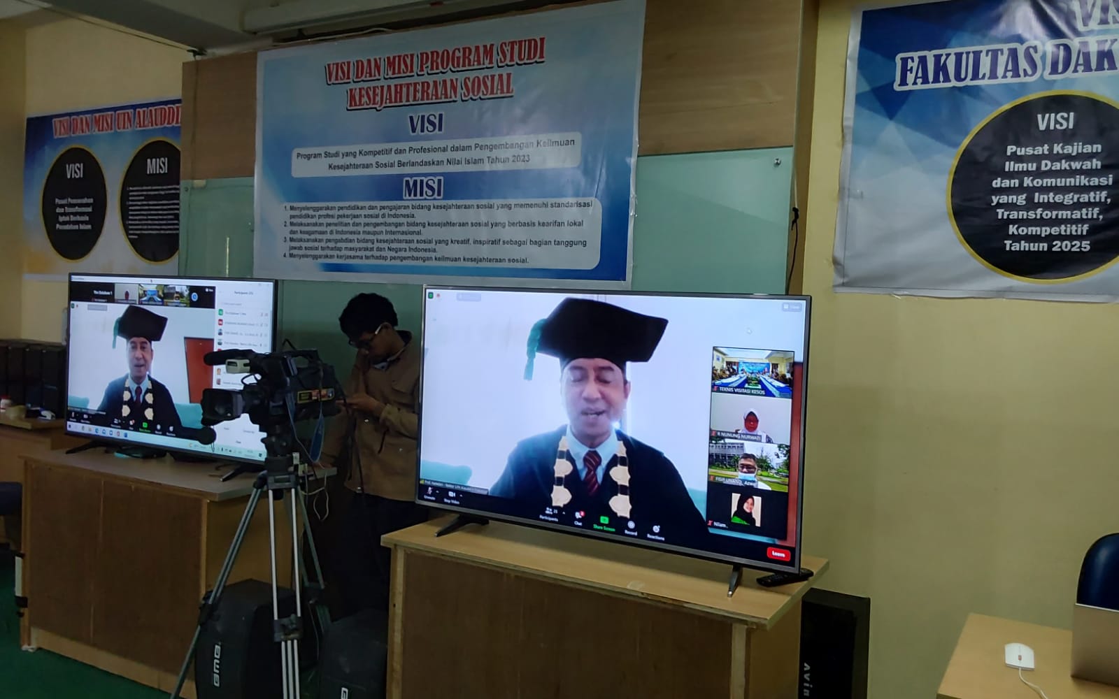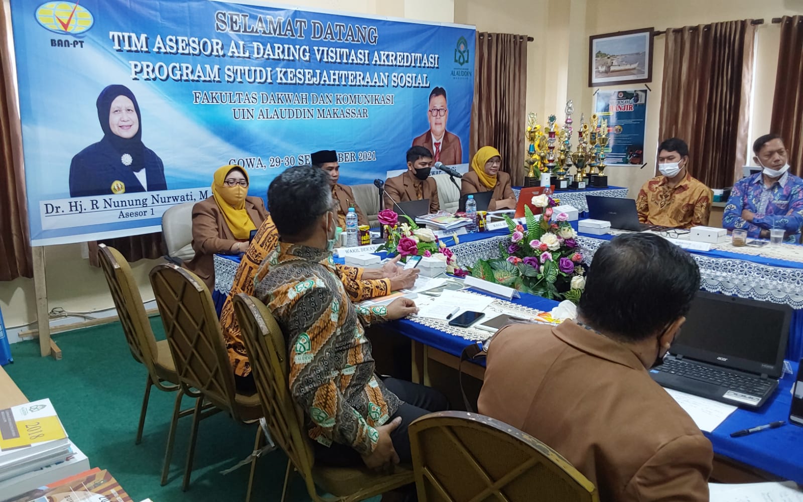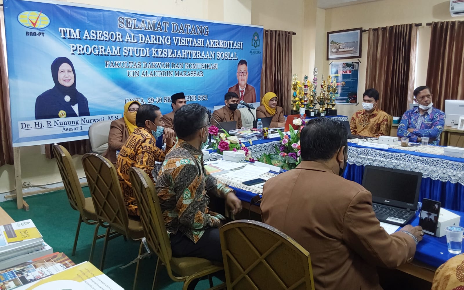 Berhubung hari ini, sedang berlangsung kegiatan wisuda sarjana, namun kami sepakat untuk menggeser acara, dengan terlebih awal menyambut assesor, yang akan melakukan visitasi pada jurusan kesejahteraan sosial.