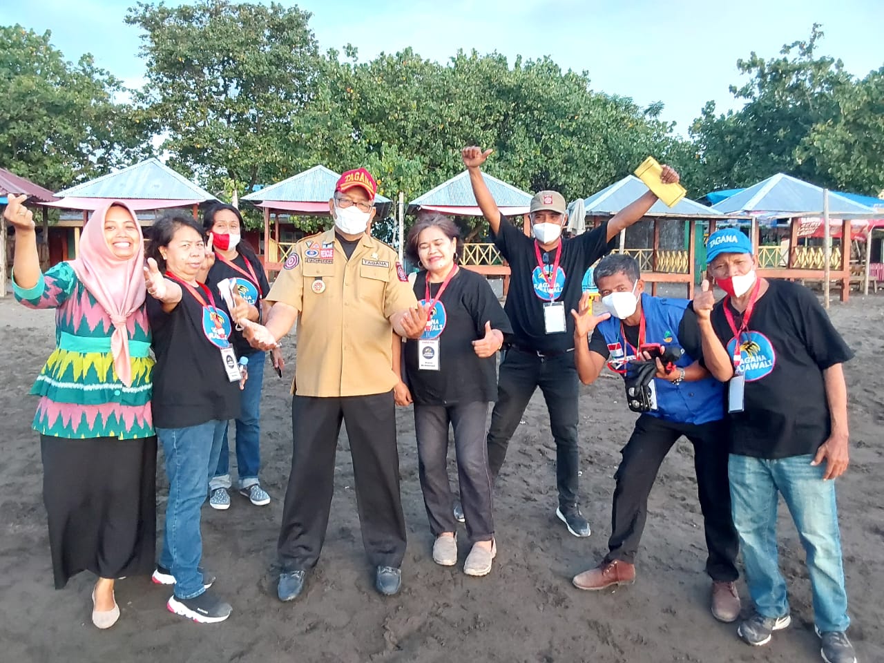 Selain itu, Melky dan kawan-kawan yang datang secara khusus ke Makassar, membawa pakaian Tagana berwarna dasar abu-abu berkrah merah, “Ini memang sengaja dibuatkan, sebagai baju dalam pelayanan” tuturnya saat berbincang dengan Perintis Tagana Indonesia di Makassar.