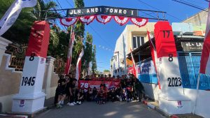 SYAKHRUDDIN.COM – Para pemuda yang tergabung dalam PELORS (Pemuda Lorong Satu) menggelar senam Maumere di Jalan Andi Tonro I di depan rumah pemilik Sanggar Sartika Dg Kebo yang menjadi penginisiatif kegiatan.