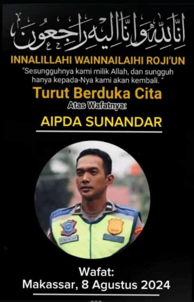 SYAKHRUDDINNEWS.COM – Aipda Sunandar, seorang anggota Direktorat Lalu Lintas (Ditlantas) Kepolisian Daerah (Polda) Sulawesi Selatan, meninggal dunia setelah tertabrak mobil yang dikemudikan oleh seorang pria lanjut usia di Makassar. Peristiwa tragis ini terjadi pada Selasa pagi, 6 Agustus 2024, di kawasan Jalan AP Pettarani.
